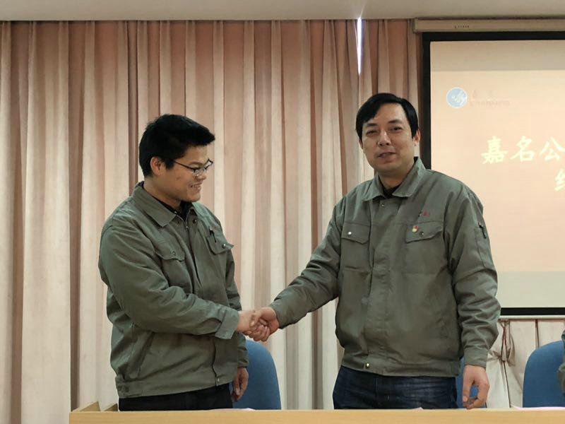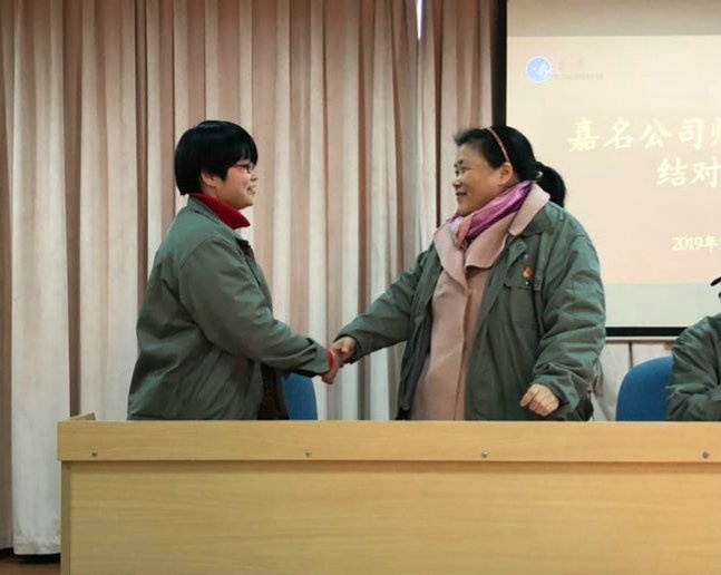 1月26日,公司舉行師徒結對儀式,公司領導、各部門負責人和結對師傅徒弟參加。儀式由公司黨建指導員吳紀聯主持,首先人力資源部經理戚遠航宣布了師徒結對名單和宣讀師徒結對協議書,9位師傅與15位徒弟在《師徒結對協議書》上簽了名,然后師傅代表、總工程師、染整事業部廠長施道妃,徒弟代表、技術中心舒越浩先后發言,最后公司莫總講了話。