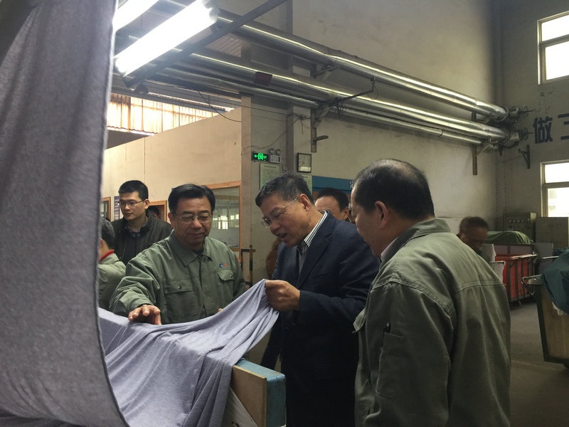 徐紀(jì)平副秘書長等領(lǐng)導(dǎo)到染部車間現(xiàn)場,實地察看了公司生產(chǎn)現(xiàn)場,向公司領(lǐng)導(dǎo)了解了公司今年經(jīng)營情況和轉(zhuǎn)型升級工作。莫總向調(diào)研組領(lǐng)導(dǎo)介紹了公司基本情況和近年來公司推進(jìn)轉(zhuǎn)型升級工作,特別是今年實施的淘汰落后產(chǎn)能實施智能化生產(chǎn)技改項目。調(diào)研組領(lǐng)導(dǎo)在車間里仔細(xì)察看了公司引進(jìn)的意大利貝利尼公司生產(chǎn)的超低浴比溢流多功能生態(tài)勻染染色機(jī),以及中央控制室,染料助劑自動化輸送系統(tǒng),對公司實施智能化生產(chǎn)技改的轉(zhuǎn)型升級舉措給予高度肯定,鼓勵公司領(lǐng)導(dǎo)進(jìn)一步通過轉(zhuǎn)型升級,推動企業(yè)向信息化、自動化、智能化方向發(fā)展,實現(xiàn)節(jié)能減排,減員增效,提高企業(yè)競爭力,促進(jìn)傳統(tǒng)企業(yè)的新發(fā)展。