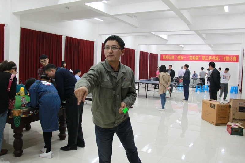為慶祝五一國(guó)際勞動(dòng)節(jié),4月28日晚,由鳳鳴街道總工會(huì)主辦的“迎五一·勞動(dòng)美”職工乒乓球、飛鏢比賽在嘉名員工公寓區(qū)文化活動(dòng)樓舉行。