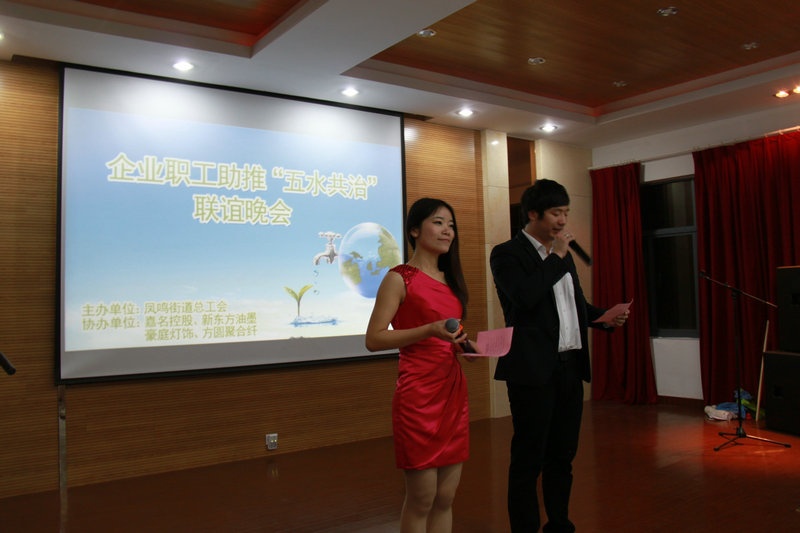 4月29日晚,由鳳鳴街道總工會主辦,“嘉名控股”、“新東方油墨”、“豪庭燈飾”、“方圓聚合纖”協辦的“企業職工助推`五水共治'聯誼晚會”在嘉名公司員工公寓區舉行。晚會活動圍繞“五水共治”,職工青春奉獻的主題,宣傳“五水共治”,體現企業職工積極參與“五水共治”活動,整個晚會洋溢在熱烈、歡快的氛圍中。來自四家企業的職工和鳳鳴街道駐村干部表演了自編自演的快板、三句半、詩朗誦、唱歌等各類節目,晚會中還穿插了趣味游戲和知識搶答節目。嘉名公司姚衛良、姚鴻、錢珍、吳耀等表演的“‘五水共治’生態美”三句半贏得了觀眾的熱烈掌聲,晚會在嘉名公司平曉紅歌唱的《愛的奉獻》中結束。