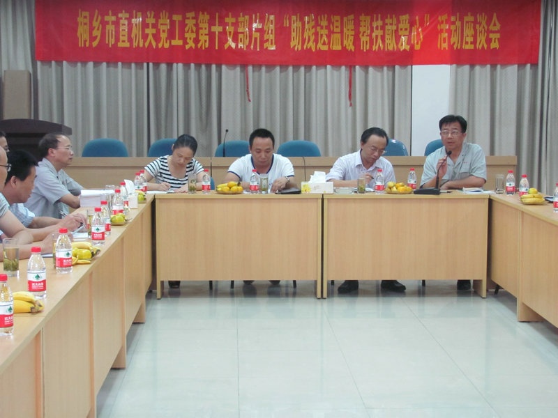 9月29日下午,桐鄉市直機關黨工委第十支部片組“助殘送溫暖,幫扶獻愛心”活動在嘉名公司進行。市直機關黨工委、檢察院、國稅局、文化局、信訪局、殘聯等部門的機關支部書記與公司總經理莫炳榮、財務總監姚金良及5位殘疾員工代表一起進行了座談,會后部門領導們還興致勃勃參觀了公司員工公寓樓。