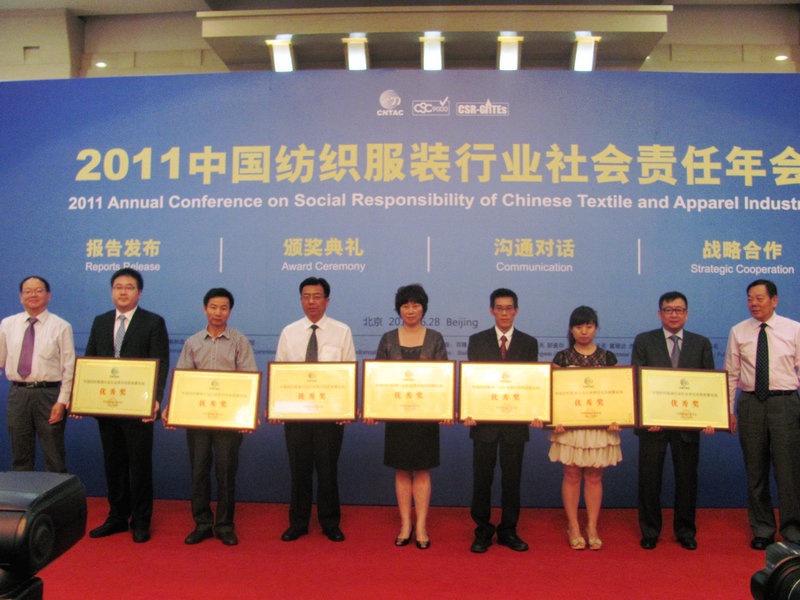 會(huì)議期間,中國(guó)紡織工業(yè)協(xié)會(huì)發(fā)布了“2010-2011中國(guó)紡織服裝行業(yè)社會(huì)責(zé)任報(bào)告”,16家紡織服裝企業(yè)同時(shí)發(fā)布了企業(yè)的2010年度社會(huì)責(zé)任報(bào)告。我公司發(fā)布的《2010年度社會(huì)責(zé)任報(bào)告》獲得了協(xié)會(huì)頒發(fā)的“2011年度中國(guó)紡織服裝行業(yè)社會(huì)責(zé)任信息披露實(shí)踐優(yōu)秀獎(jiǎng)”。莫總在發(fā)表獲獎(jiǎng)感言時(shí)表示:在堅(jiān)持“為顧客創(chuàng)造價(jià)值、為企業(yè)增創(chuàng)效益、為員工謀求發(fā)展、為社會(huì)多做貢獻(xiàn)”的企業(yè)核心價(jià)值觀指導(dǎo)下,我們將繼續(xù)努力,為紡織行業(yè)的發(fā)展做出新的貢獻(xiàn)!